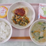今日の給食は、 鶏ごぼうごはん、牛乳、夏野菜のみそ汁、さばの辛味焼き です。 今日のみそ汁には、夏が旬のかぼちゃ、なす、さやいんげんが入っていました。大きめに切った野菜がゴロゴロっとしていて食べ応え …