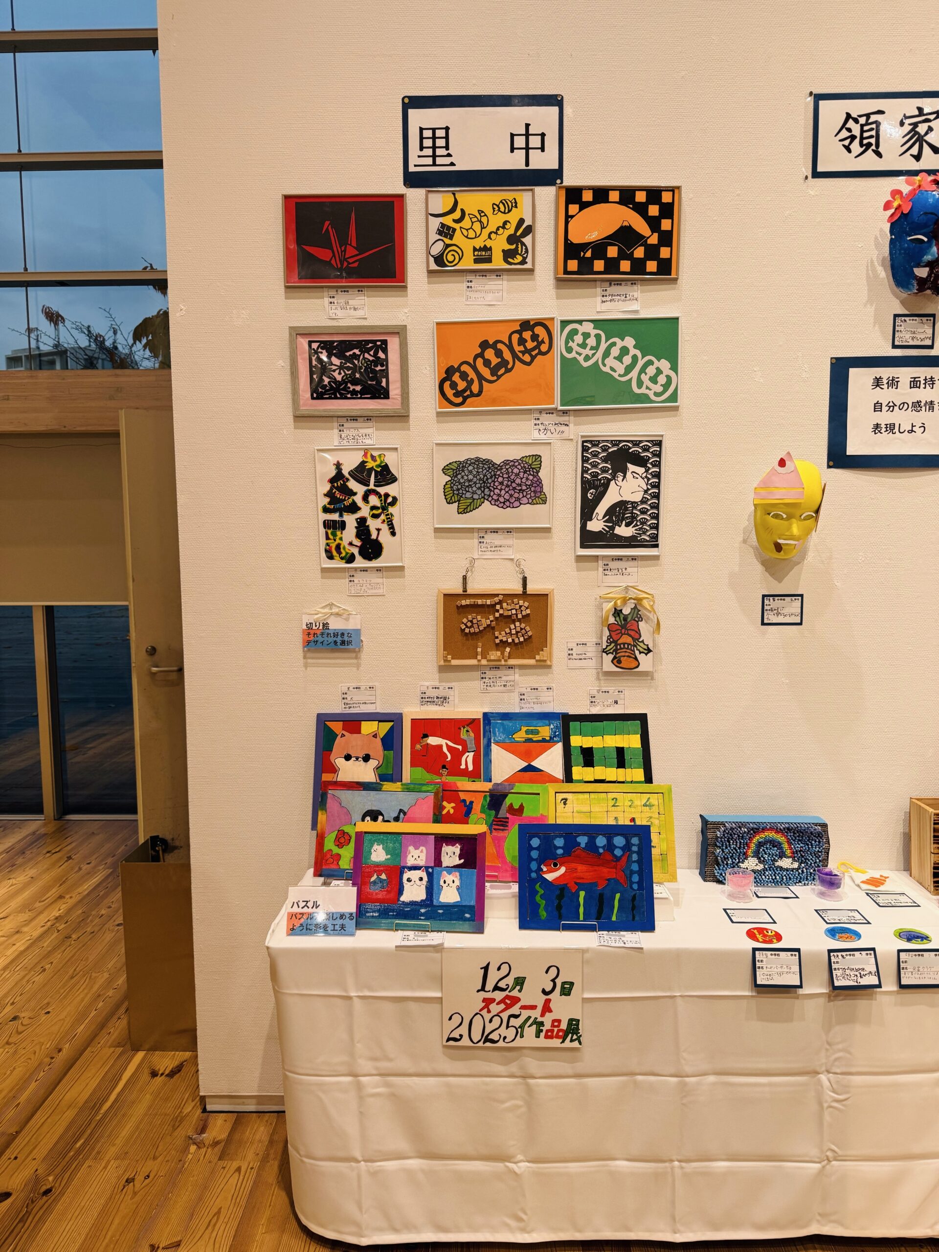 生徒たちが一生懸命製作した作品が飾られているので、