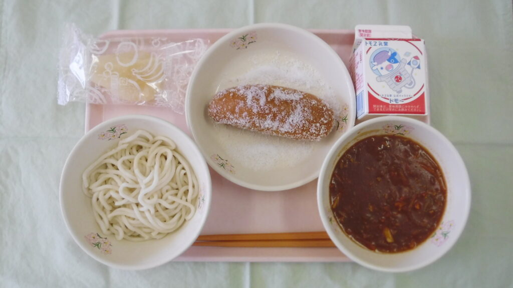 今日の給食は、 きつねうどん、牛乳、氷下魚(こまい)フライ、枝豆 です。  先週は部活動の大会のため、給食がなかったので、久しぶりのめんの日でした。めんの日はどの学年もたくさん食べてくれるので嬉しいで …