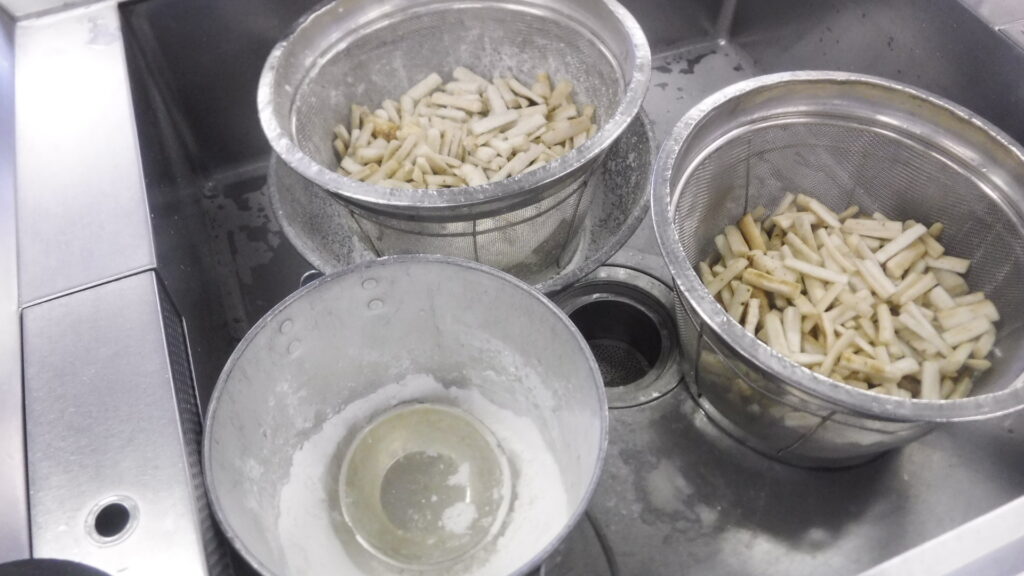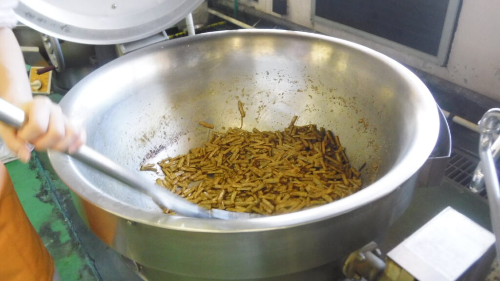 ごぼうはでんぷんをつけて揚げ、甘辛たれをからめました。あと引くおいしさです!