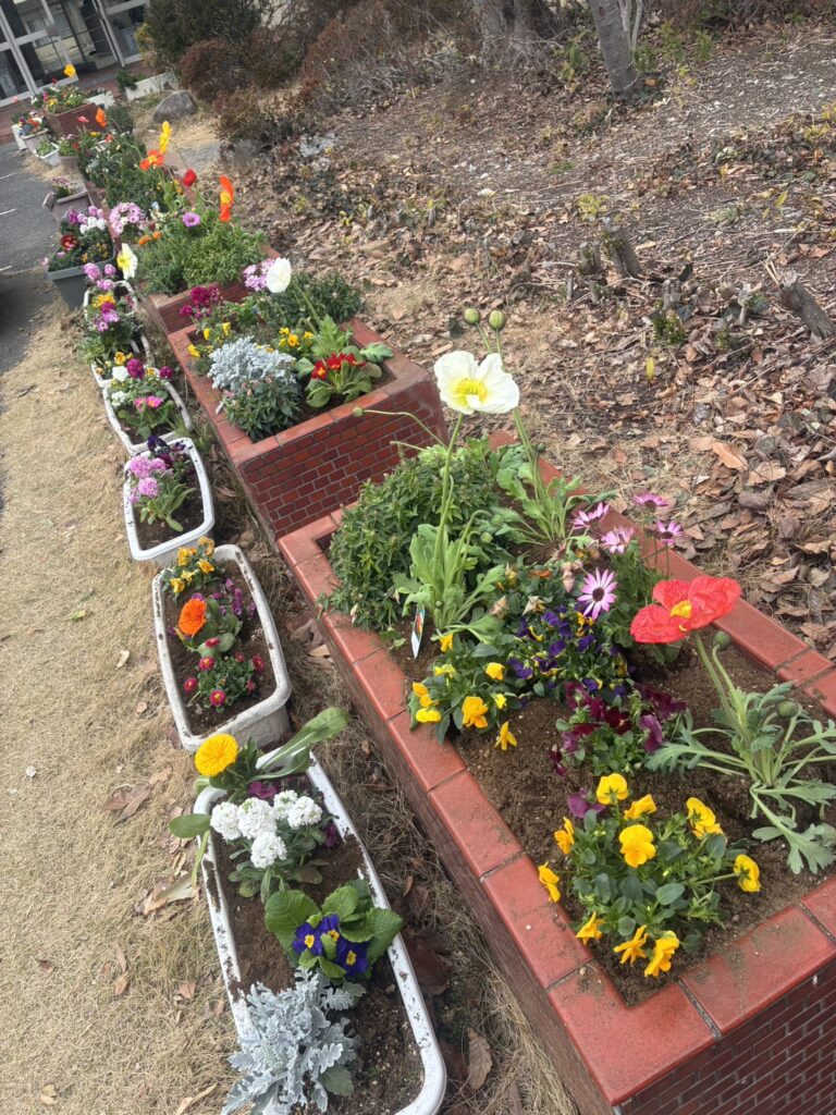 春らしい彩り豊かな花壇ができ上がりました。ご協力いただいたみなさま、ありがとうございました。