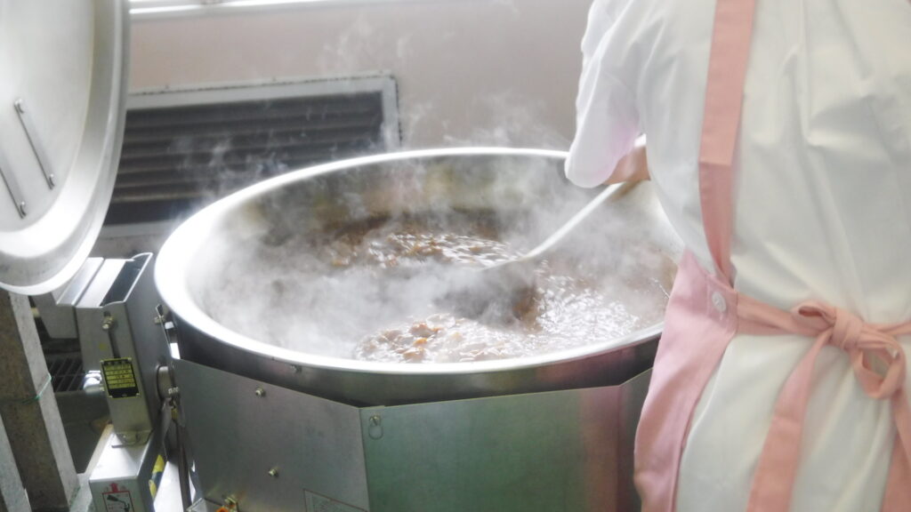 カレーは焦げないように絶えず混ぜるのがコツです。今日もおいしく仕上げてくれました♪