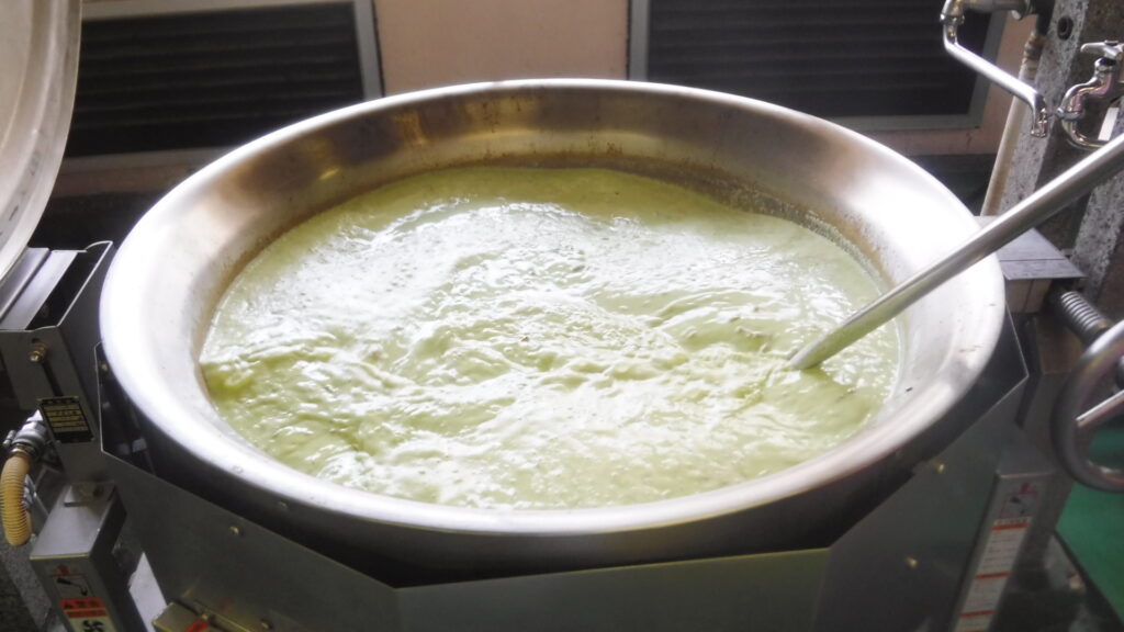 作っている途中のみどり色具合には私もびっくりしましたが、牛乳を加えることでまろやかな色味に変わりました。グリンピースの青臭さはなく、おいしいポタージュに仕上がりました!