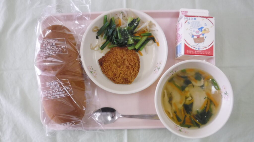 今日の給食は、 長崎ちゃんぽん、牛乳、ひじきぎょうざ、ライチゼリー です。 今学期最初のめんの日は、長崎ちゃんぽんでした。長崎ちゃんぽんはスープに野菜がたっぷり入っているので、とても食べ応えがありま …