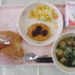 今日の給食は、 はちみつパン、牛乳、冬野菜のクリームスープ、コーンフライ、ほうれんそうとベーコンのソテーです。 冬野菜のシチューに入るブロッコリーは別で下茹でをしておきます。 温めた牛乳を入れて、ルウ …