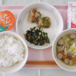 今日の給食は、 ごはん、牛乳、せんべい汁、いろどりたまご焼き、きんぴらごぼうです。 今日は寒い日にぴったりな「せんべい汁」です! せんべい汁は青森県の郷土料理で、せんべい汁用の南部せんべいをしょうゆ味 …