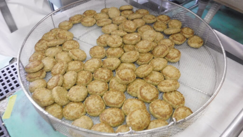 里中の給食室には焼き物ができる設備がないので、焼き目のついているハンバーグを蒸して提供しています!