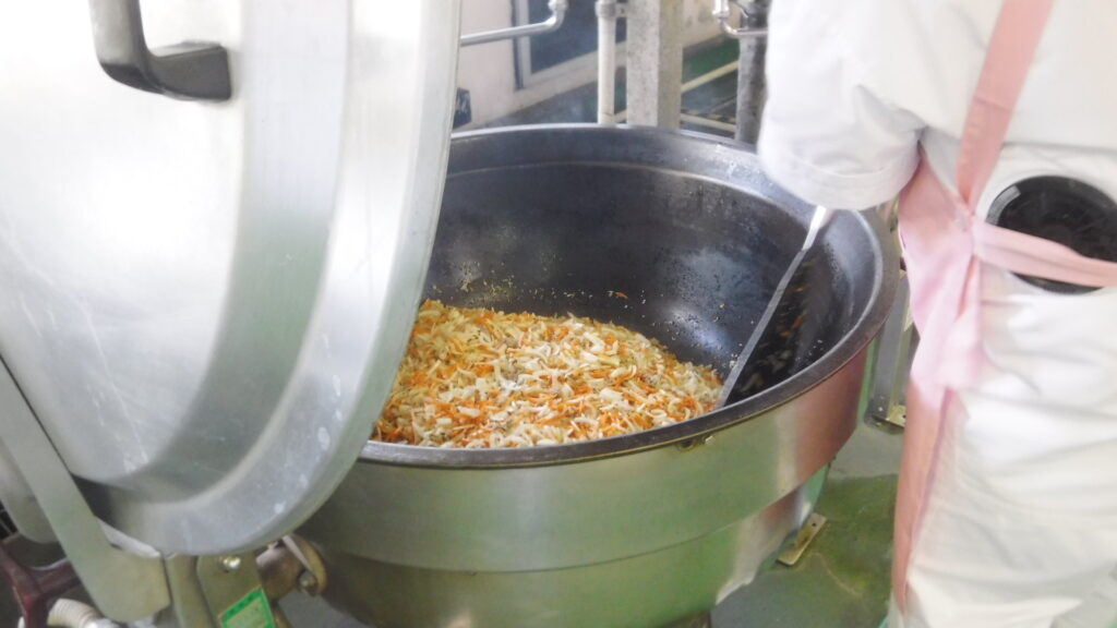 しゅうまいはいつも、蒸して提供していますが、釜の不調のため今日は揚げしゅうまいとして提供しました。