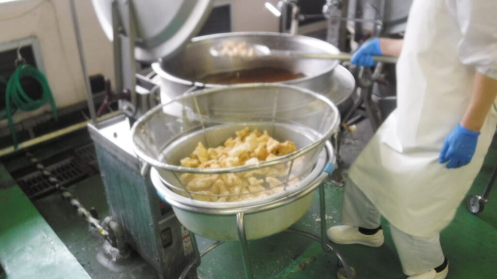 鶏肉のねぎみそ揚げは上げた鶏肉にねぎみそだれをかけています。あまじょっぱい味でごはんがすすみます。