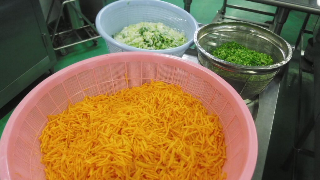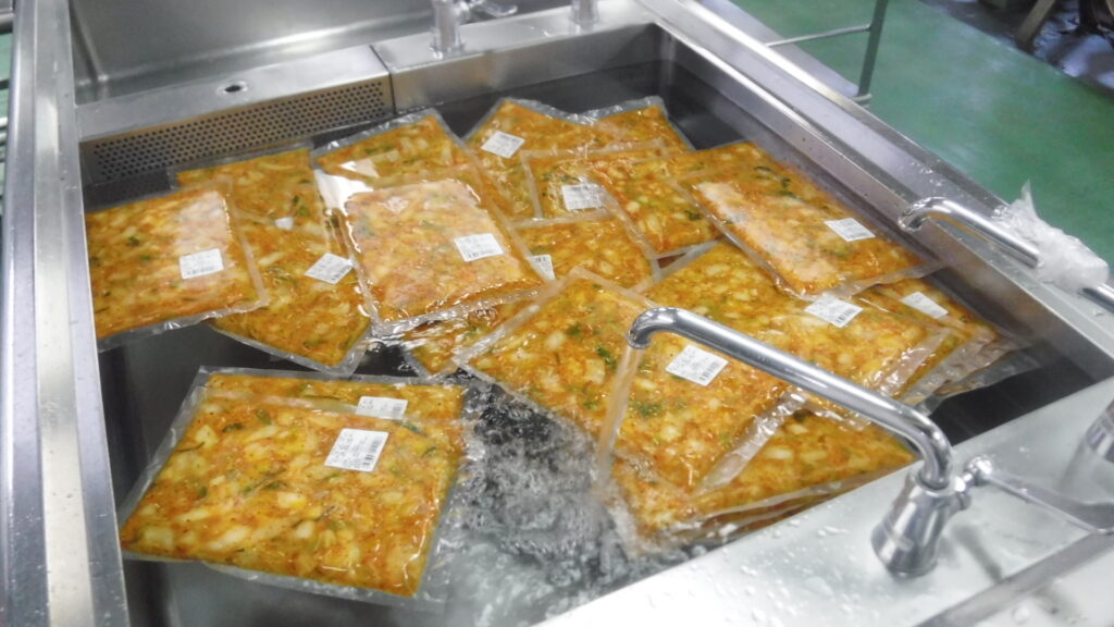 キムチは冷凍で納品されるので、流水解凍をします。